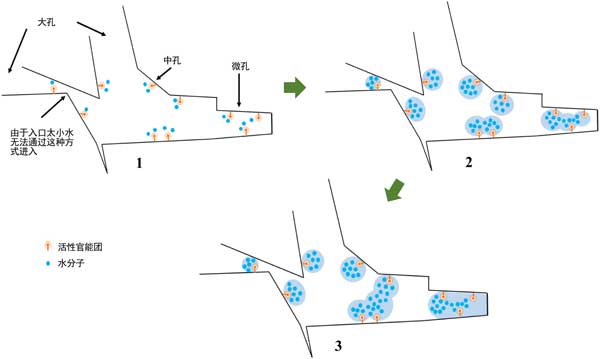 圖3:活性炭表面水蒸氣吸附機(jī)理。