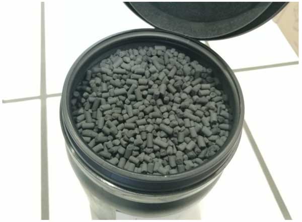 根據(jù)直接使用瓶裝真實氣體所獲得的結(jié)果,包括列出的催化劑毒物,這會導(dǎo)致催化劑快速降解,因此在第一個反應(yīng)器的上游安裝了活性炭過濾器。為此,將金屬氧化物浸漬的活性炭顆粒添加到氣體混合站。這些顆粒專門開發(fā)用于從缺氧氣流(例如CO2、N2、CO和H2)中去除硫化氫、有機硫醇、二氧化硫、硫化羰和氮氧化物。它們的銅含量為7%(以CuO計),直徑為3mm,長度為7mm(圖3)。將總共約300毫升的這些顆粒活性炭加入氣體混合站。