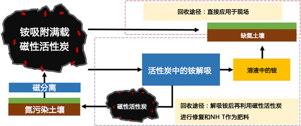 圖2:土壤修復后磁性活性炭和銨鹽的兩種循環利用途徑。