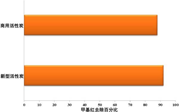 經過批量吸附測試數據后,將新型活性炭的結果與當地可用的商用活性炭進行了比較。圖4表示與活性炭的比較實驗數據。
