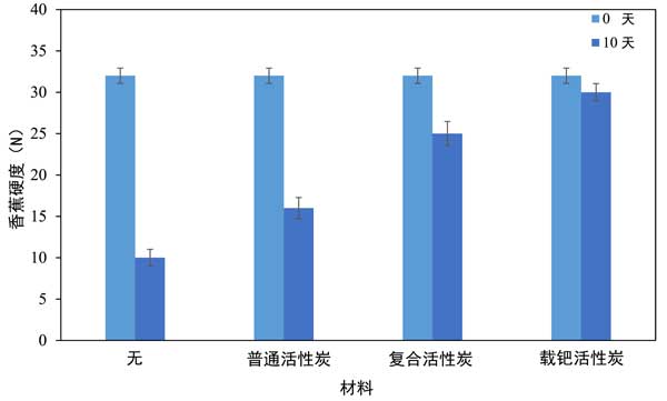 圖2:活性炭材料對香蕉貯藏10天后硬度變化的影響。