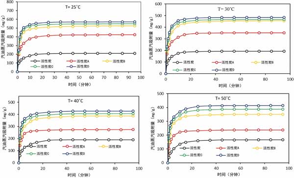 經(jīng)過進(jìn)一步研究,發(fā)現(xiàn)活性炭D樣品比其他樣品更能增強(qiáng)汽油蒸汽吸附,這表明表面結(jié)構(gòu)在捕獲分子方面的重要性和關(guān)鍵作用,正如預(yù)期的增強(qiáng)吸附一樣。事實(shí)上,與其他合成樣品相比,活性炭樣品具有更高的表面積和豐富的微介孔,可以顯著提高吸附量圖2。我們還研究了活性炭用量對吸附容量的影響。正如發(fā)現(xiàn)的那樣,隨著活性炭的用量增加,蒸汽吸附能力可以進(jìn)一步提高,這可能是由于通過提高活性炭量,表面積和孔隙反而增加,進(jìn)而可能有助于增強(qiáng)吸附。鑒于發(fā)現(xiàn)隨著活性炭用量比從1增加到4,汽油蒸氣吸附能力提高。