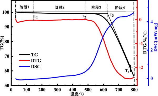 第一階段是水蒸發和解吸階段,從開始到T1。此階段活性炭樣品和吸熱DSC的質量損失主要是由于表面和孔隙內部的水蒸發以及氣體解吸造成的。